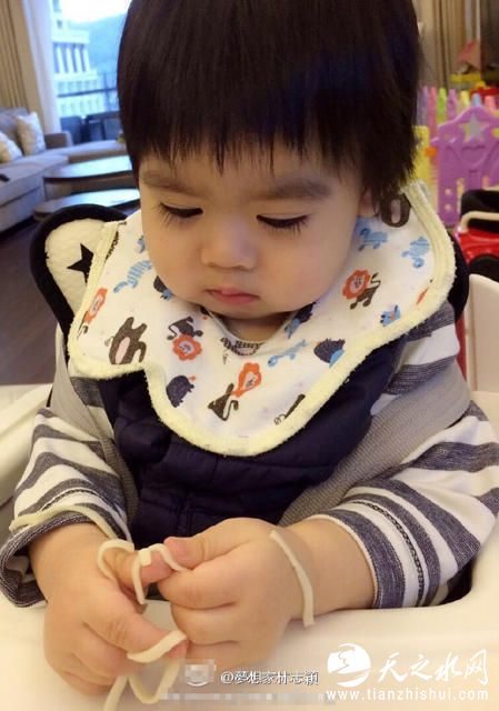 腾讯娱乐讯 据台湾媒体报道,林志颖15日在脸书分享3张照片,小儿子紧盯着手里的面条,想吃却不太知道方法,吃得桌上到处都散落着面,心急地弯腰直接吸起来的模样超可爱,尤其他鼓着肉肉的脸颊、视线往下移时浓密纤长的睫毛也超明显。