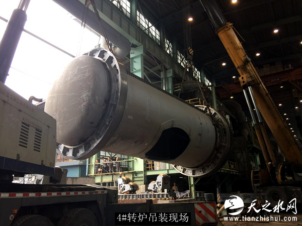 和鼎二期4号、5号管式皮带廊是侧吹炉工艺部分的上料系统,总重达390余吨。从1月11日开始吊装,由于受到雨水影响,导致吊装任务时断时续,最终在19日上午10时完成4号、5号管式皮带廊吊装。下午3时,两台重吨位吊车的吊钩同时下降,将重达150吨的4号转炉炉体安全平稳地落在预先调整到位的托轮座上,标志着转炉本体就位节点完成,同时启动本体安装节点模式。