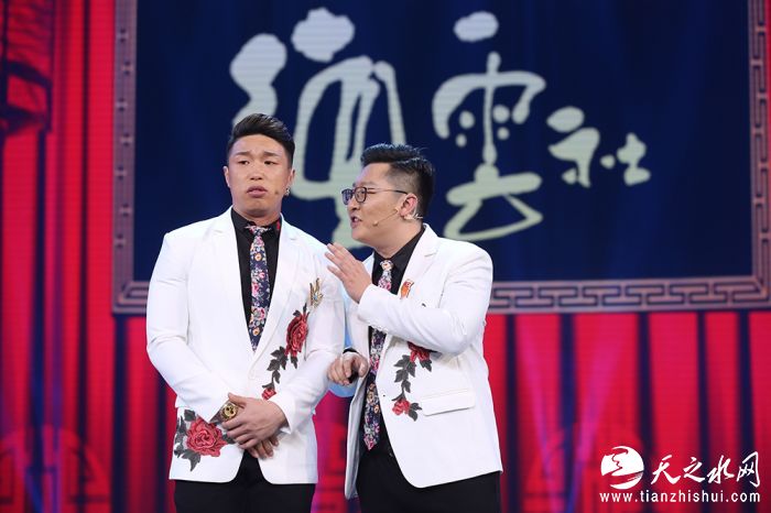 与姜昆同台表演的还有苗阜、王声。来自青曲社的他们这次带来的相声《国学大师》是个老词新说的节目。苗阜说杯水车薪是每天喝杯水就有一车薪水,度日如年是每天都像过年,还说刻舟求剑是有拖延症。这个节目的段子非常密集,不时引来全场爆笑。