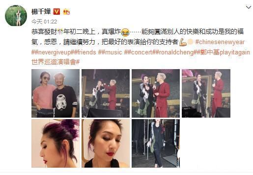 现年44岁的郑中基曾经是情场浪子,苦追杨千嬅三年并作曲示爱,于1999年疑因张柏芝介入分手,2010年被曝跟蔡卓妍隐婚又离婚,第二年与有线前主播余思敏奉女成婚,曾唱《无赖》自嘲的他,29日晚在红馆开唱,竟然请到旧爱杨千嬅做嘉宾,两人继四年前在香港电影金像奖碰头后,29日晚再度合体,在台上合唱,基嫂余思敏和孩子坐在台下第一排观看,杨千嬅的妈妈和弟弟也有捧场,而前妻蔡卓妍则去奶奶家拜年,30日更离港去旅行。