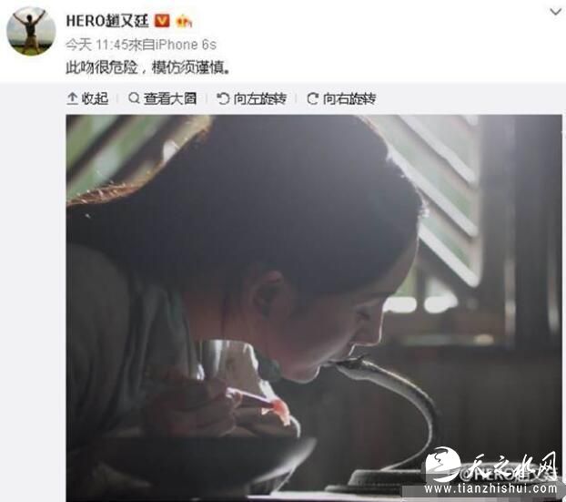 腾讯娱乐讯 据台湾媒体《中时电子报》2月5日报道,内地女星杨幂与赵又廷合作的新戏《三生三世十里桃花》近期热播,收视成绩亮眼,不过杨幂在戏中女扮男装的高发线引发热议,她还因此放话要植发,杨幂高EQ回答发线危机,而这部戏同时也是杨幂、赵又廷首度合作,赵又廷还直呼杨幂是个女汉子,5日赵又廷晒出杨幂亲吻照,直呼:“此吻很危险”。九重天太子“夜华”赵又廷与青丘帝姬“白浅”杨幂在新戏《三生三世十里桃花》中,有历经三生三世的爱恨纠葛,两人穿起古装、上演虐心爱恋,赵又廷晒出杨幂闭眼深情吻蛇照,并直呼:“此吻很危险,模仿须谨慎”。 而杨幂与赵又廷日前出席新戏发表会时,赵又廷直呼杨幂是个性豪放的女汉子,杨幂称赵又廷感情丰富,还爆料他演戏演着就哭了,两人互糗笑翻众人。