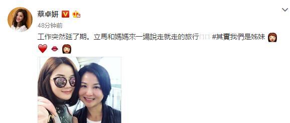 阿Sa发文:“工作突然延了期。立马和妈妈来一场说走就走的旅行,其实我们是姐妹!”Sa妈精致的五官让网友高呼高颜值,纷纷点赞。