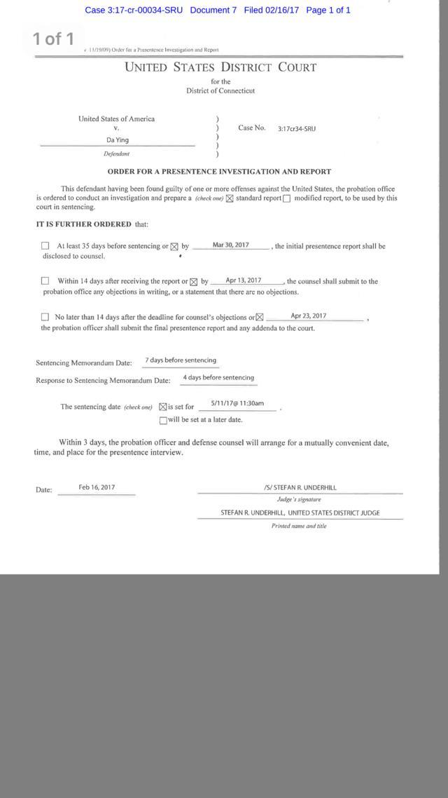 但法官不一定会遵照检察官的建议进行判决。法官Underhill 将在2017年5月11日对英达进行宣判。