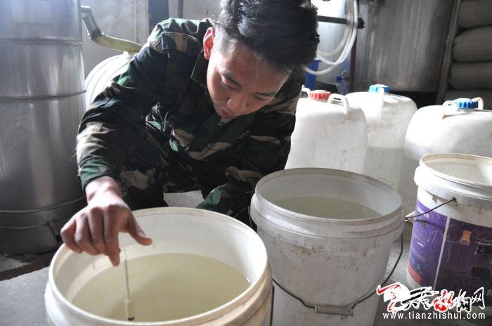 据天天天水网 【记者 刘晓亚】 2月27日,农历二月初二。二月二,春事兴,这一天对于赵文博来说可以说是一个大喜的日子,因为他2017年的第一窖酒历时近三个月的发酵就要开窖出酒了。