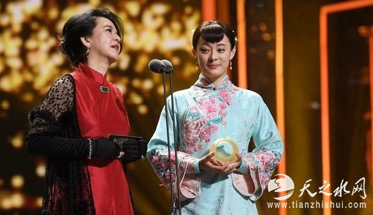 孙俪因为在新戏《那年花开月正圆》中为古装妆扮,穿整套古装需要耗费很多时间,在典礼后还要赶回去拍摄,所以她就直接穿着戏服前往典礼,虽然有些格格不入,但水蓝色旗袍突显了她的优雅气质。