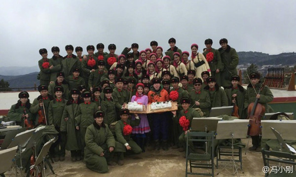 冯小刚片场庆生照