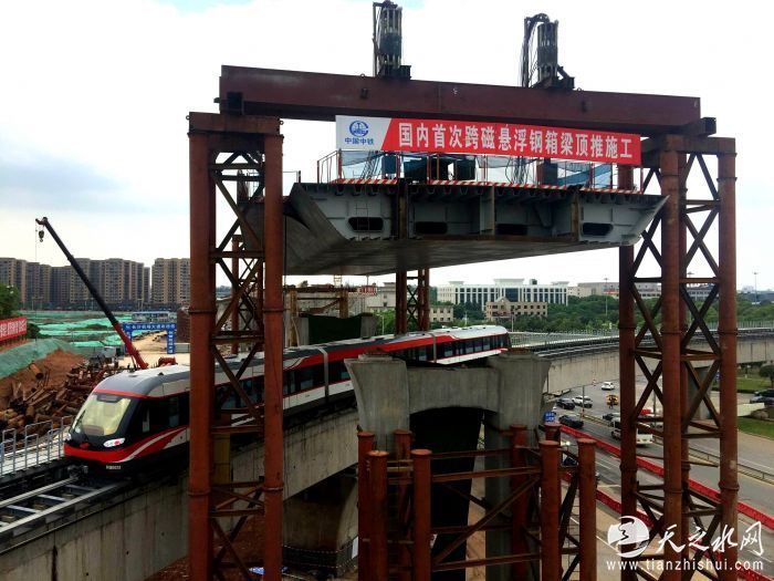 长沙机场大道完成国内首次跨磁浮快线钢箱梁顶推施工