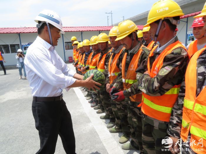 慰问组带着西瓜、矿泉水、凉茶等慰问品深入劳务工班,将物品分发到农民工手中。慰问组在送清凉的过程中,详细询问了解了农民工的生活情况,向他们作了防暑知识宣讲,并与民工们一起合影。连逢逾再三叮嘱项目负责人,要切实做好夏季防暑降温和安全生产工作,精心安排好员工工作和生活,着力解决好员工最关心、最直接、最突出的问题,让员工充分享受交通发展成果,不断提升员工幸福指数,使广大干部员工在炎热夏日里身心能够得到实实在在的清凉,以更加愉悦轻松的心情投入成都轨道交通建设工作。