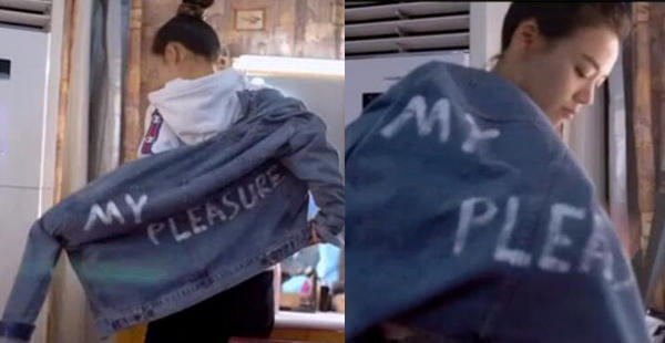 欧豪牛仔衣上写着“谢谢你来到我生命”