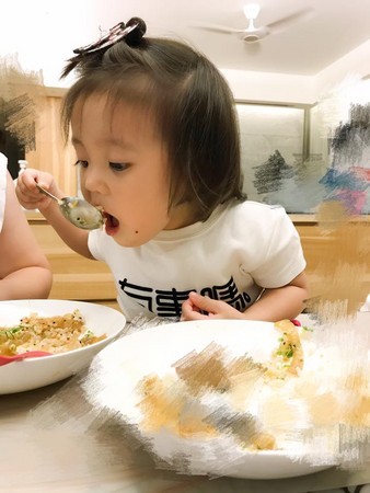 不过,由于近日修杰楷出国工作,难得轮到贾静雯大展身手,当晚她第一次尝试烹煮薑汁烧肉井,获得女儿的大力支持,“只能说仙女咘很捧场,已吃完自己的饭饭还抢着吃妈咪煮的新菜色,开心…爸爸好好安心工作喔~有照顾好你的宝贝们,晚安。”