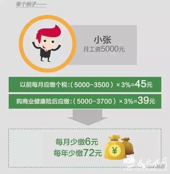 财政部、税务总局与保监会等三部门联合下发《关于将商业健康保险个人所得税试点政策推广到全国范围实施的通知》,自今年7月1日起执行。《通知》指出,该政策的主要内容是:对个人购买符合规定的商业健康保险产品的支出,允许在当年(月)计算应纳税所得额时予以税前扣除,扣除限额为2400元/年(200元/月)。