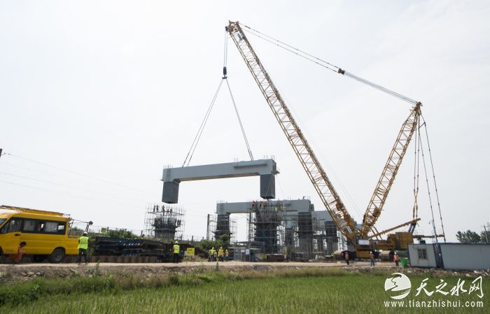 商合杭高铁首座特大桥五榀跨淮南铁路门式墩钢盖梁吊装仅用五天,平均每天还不到一小时的要点“天窗”施工时间,将跨既有铁路门式墩钢盖梁全部吊装到位,充分显示了“大国重器”安装专业户汉江重工实力。