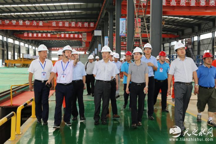钟华一行在赣州市铁路建设办公室主任邱世禄、赣州建指指挥长肖矜、中铁二十一局昌赣客专常务副经理杨红亮等的陪同下,先后参观了轨道板场生产车间工艺流程水养区、拆装区、钢筋区、蒸养区、检测区等主要生产区。
