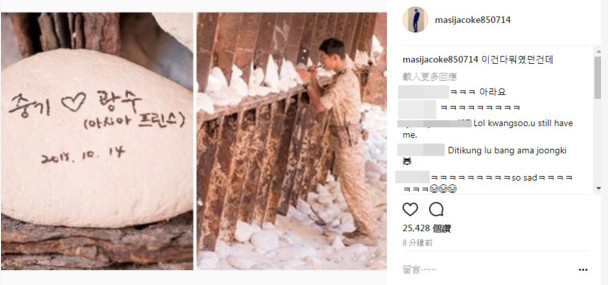 婚讯声明过了一整天李光洙终于在IG发文,原以为会是充满感人肺腑兄弟情谊的祝福话语,没想到他完全不改搞笑本色,贴出宋仲基在画石头的照片外,还有石头上方文字“仲基光洙(亚洲王子)2015.10.14”的照片质问对方,“这些都算什么”,笑翻一大票粉丝!