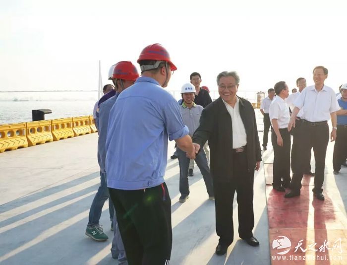 (记者 常魁星 通讯员 陈爱民 马飞宇)7月11日下午,第十二届全国人大财政经济委员会主任委员、原交通运输部部长、党组书记李盛霖;第十二届全国人大财政经济委员会副主任委员、原江苏省省长、省委副书记李学勇;第十二届全国人大财政经济委员会副主任委员、原重庆市市长、市委副书记黄奇帆等一行到中交三航局三公司承建的南通市通海一期码头工程考察,与施工人员进行了亲切交谈,听取了工程介绍,对工程施工取得成绩予以肯定。江苏省人大常委会副主任刘永忠、江苏省交通运输厅副厅长丁军华、南通市委书记陆志鹏、南通市港口管理局局长王开亮以及中交三航局三公司执行董事、总经理魏德新陪同考察。