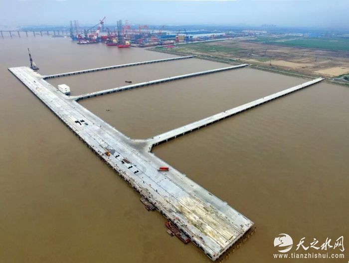 通海码头一期工程,位于苏通大桥长江北侧下游2公里,南通市与海门市交界处。码头泊位设内档、外档两个平台,其中外档设置3个7万吨级海轮泊位,泊位长度958米,内侧设置1个5千吨级驳船泊位,泊位长度208 米,宽14米,共分14个分段。码头平台总面积4万多平方米。码头平台与后方陆域通过设置3座引桥衔接,引桥长度分别为655米、658米、662米,宽度均为16米。码头共打桩2419根,其中PHC管桩2302根、钢管桩53根。中交三航局三公司南通通海一期码头工程项目在省厅、南通市各项综合质量督查中名列前茅,并获得了江苏省2016年度公路水运工程“平安工地”建设省级示范工程荣誉称号。