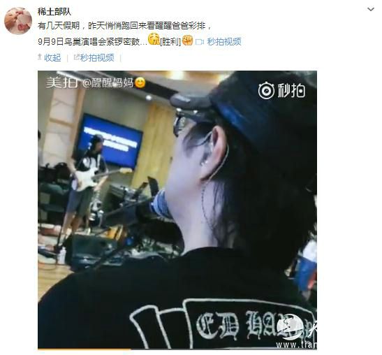 视频中,汪峰身穿标配黑色T恤、黑色鸭舌帽休闲装扮,手持吉他与其他队员进行着紧张的闭关排练。乐谱、电子琴、架子鼓、调音设备等在视频中一闪而过。章子怡这段小视频短短十几秒拍出了“摇滚范”。