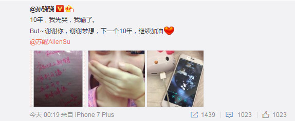 孙骁骁微博截图