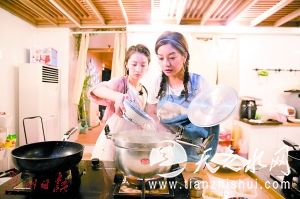 周冬雨(左)和赵薇在《中餐厅》中当“大厨”。