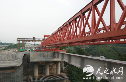 天之水网讯(记者常魁星 、通讯员胡巍)7月30日,“前移半公分,落、落、落……好!”随着对讲机中发出的指令,中交一公局贵州双龙航空港龙水路二期项目渔梁河大桥首片50米预制T梁安全就位。