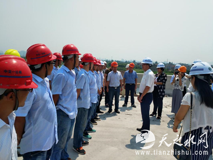 天之水网讯(记者常魁星 通讯员李自瑞)7月28日,浙江省余姚市政协主席陈长锋在余姚市副市长黄琪的陪同下到中交一公局杭甬高速公路连接线(南段)二合同挂篮施工现场慰问冒高温奋战在一线的施工人员。