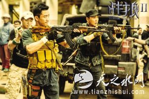 《战狼2》的动作戏备受观众推崇。习武出身、本身就有强烈军人情结的吴京将战争场面和打斗戏打磨得十分出色,被评价为“中国式打斗近乎完美的呈现”。不管是开场的水下长镜头搏斗,还是后面与吴刚、张翰并肩枪战,以及大玩坦克漂移,都已经达到了好莱坞动作片的水准。《洛杉矶时报》给出了这样的评价:“看到了一部如此接近好莱坞的战争大片……水下功夫,冷锋和无人机间的猫鼠游戏,还有沙石飞溅的坦克大战都让人眼花缭乱。”尤其是冷锋与大反派交叉骨之间的几场贴身肉搏,动作细节呈现得细腻又保持了极快的节奏,配上凌厉的剪辑技巧,更是让习惯了中国功夫的观众情不自禁地入戏,为冷锋捏一把汗。