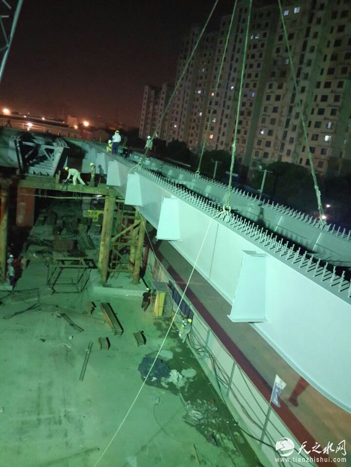 (记者 常魁星 通讯员 韩青 陈爱民)8月5日夜里10时,中交三航局无锡江海西路快速化改造工程JHX03标项目首件钢混叠合梁吊装施工在139-140号墩间进行。在建设指挥长亲自坐镇指挥下第一分段进行吊装,300吨的履带吊车将35吨重的钢梁缓缓吊起。经过全体员工6个小时的不懈努力,次日凌晨3时30分,139-140号墩间钢混叠合梁吊装作业成功完成。