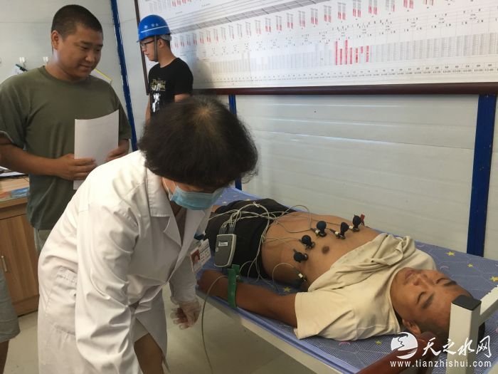 医护人员给工人们进行了心电图检查、测量血压以及心肺功能检查等常规项目检查,医护人员一边进行常规身体检查,一边向工人们普及健康知识,回答工人们提出的各种健康咨询,向一线工人讲述健康预防知识,让他们懂得平时如何关爱自己身体。