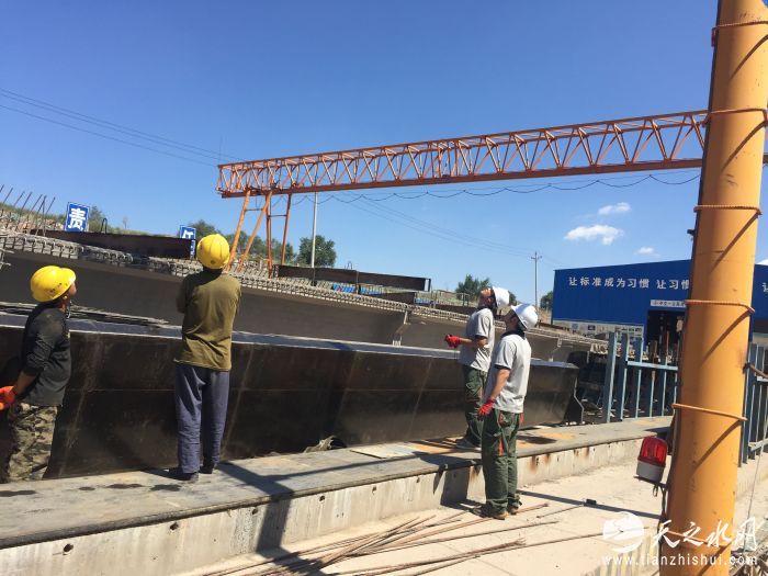 一分部梁场预制30米箱梁480片,分别配置2台5吨、2台80吨龙门吊。7月下旬梁场再次复工,项目立即安排龙门吊的复检工作,联系特检机构,及时报检。特检机构工作人员现场对龙门吊主梁的弓度、外观、支腿、钢丝绳、限位器、液压自动夹轨器以及运行机构各部件运行情况进行了详细的检查。