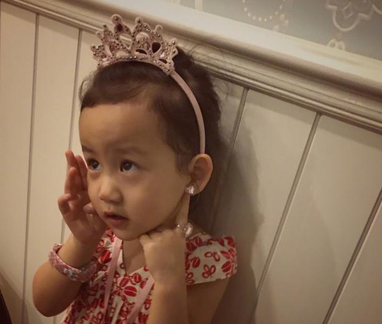 腾讯娱乐讯8月7日晚,黄磊老婆孙莉通过微博晒小女儿多妹臭美的照片,并称:“终于可以像姐姐一样戴耳环啦!”照片中,多妹穿着红白碎花连衣裙,头上戴着发卡皇冠,十分的可爱。