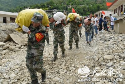 灾情发生后,陇南军分区政委时镇带领前进指挥所,赶赴文县天池镇白马村受灾现场,指挥协调抢险救灾工作。