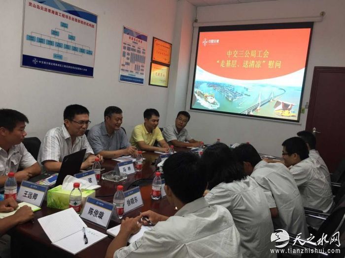 (记者 常魁星 通讯员 董超)盛夏,广州持续高温,暑热难当,中交三公局广州南沙项目施工生产正如火如荼的进行。8月17日,中交三公局副总经济师、机关党委书记张建国、局团委书记许璇在公司党委副书记、工会主席马林的陪同下,顶着烈日到广州南沙项目看望和慰问高温下坚守一线的职工们,为一线职工送上消暑饮料、劳保用品等防暑物资,带来了“娘家人”的清凉和关怀。叮嘱大家要提高自我保护意识,高温下施工要注意安全,注意劳逸结合。