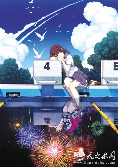 动画《烟花》(图)海报囊括了岩井俊二剧集版的主要元素:少女,游泳池和烟花。