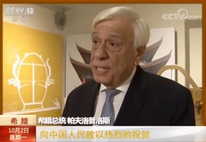 我代表希腊人民,在中国国庆节到来之际,向中国人民致以热烈的祝贺。