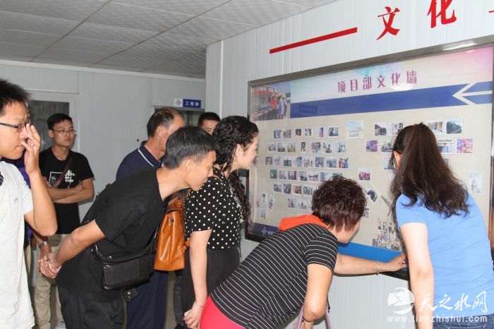 员工家属参观了项目部的办公室,阅览室及特色文化宣传栏,在宣传栏中看到了项目部各种活动的照片,看到了自己亲人在工作之余的休闲活动,看到了项目部对员工的培养与关心,与项目部领导进行了深入的谈话交流。