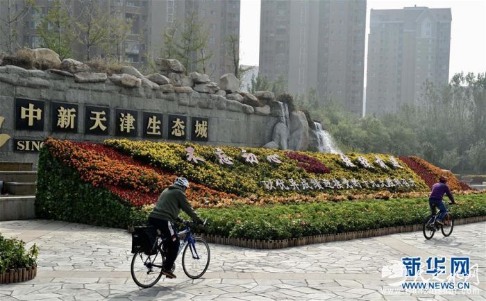两名骑行爱好者在中新天津生态城骑行(10月20日摄)。