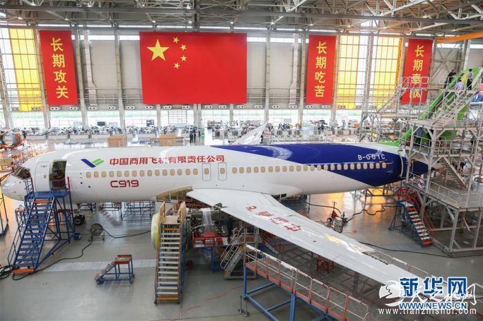 C919大型客机102架机停放在中国商飞公司上海飞机制造有限公司总装车间内(10月18日摄)。