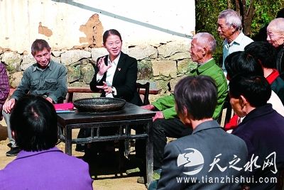 10月27日,余静代表(后左二)在安徽省金寨县大湾村向村民宣讲党的十九大精神。