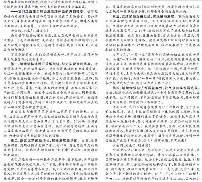 如何开辟亚太发展繁荣的光明未来?演讲中拿出了4个方案。