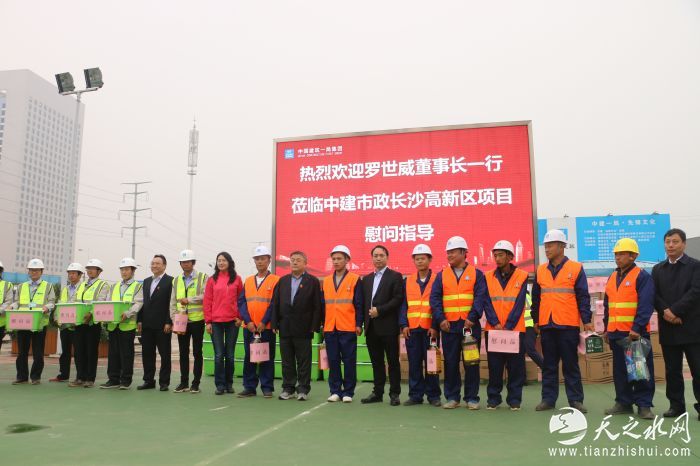 (记者 常魁星 通讯员 陈小文)11月10日,中建一局党委书记、董事长罗世威一行莅临市政公司长沙高新区路网项目慰问奋战在一线的员工,指导项目管理和基层党建工作。集团公司副总经理、市政公司党委书记、董事长袁立刚,集团公司董事会秘书、办公室主任石平,集团党委工作部、工会工作部、品牌管理部部长于震等参加慰问。