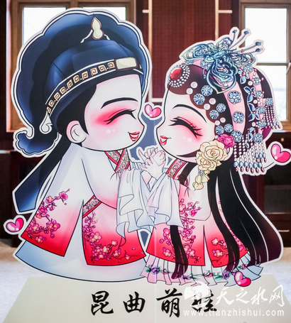 发布会现场也摆满了三个角色的卡通立牌,有含情脉脉相视一笑的梦梦、丽丽,有在一旁捂嘴大笑的春香,最具特色的不仅有那精致繁复的戏服,还有三个人物一双双水汪汪的大眼睛,远远见到,就能让宾客眉开眼笑,忍不住纷纷上前合影了。
