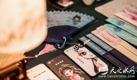 衍生品展示柜上,满满地摆放着红包、茶杯、雨伞、书包、折扇、抱枕等各色样品,每一个衍生品上都设计了不一样的“昆曲萌娃”图案。一会儿功夫,小朋友和家长就将柜台围了好几层,争先恐后填写预订单。