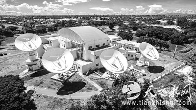 老挝一号通信卫星项目由中国亚太移动通信卫星有限责任公司总承包,这颗卫星在中国西昌卫星发射中心用长征三号乙运载火箭成功发射。图为在老挝首都万象拍摄的老挝亚太卫星地面站。新华社发(刘艾伦摄)