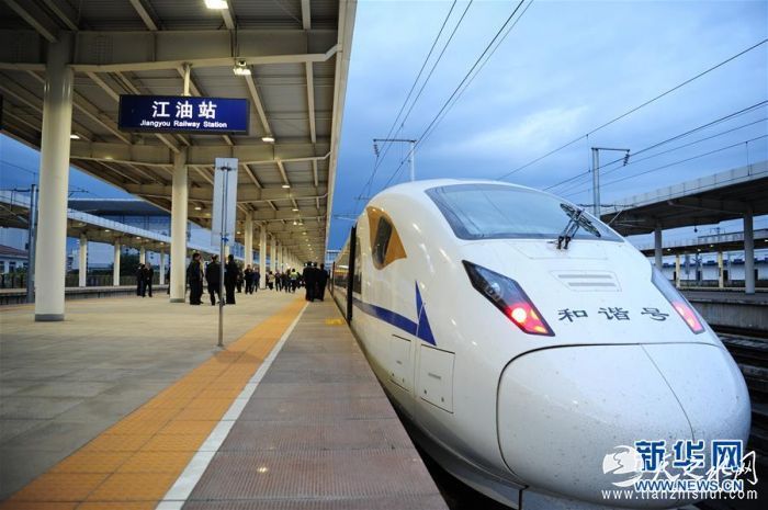 55601次动车组试验列车抵达四川江油站(11月13日摄)。