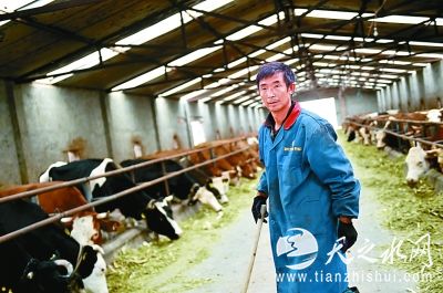 宁夏同心县大力发展“多彩产业”,帮助农民增收。图为同心县韦州镇荣振肉牛养殖联合合作社内工人在干活。新华社发