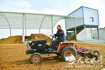 河南省平顶山市创新探索出“百亩千头生态方”种养结合循环发展模式。图为牧业公司员工驾驶农机晾晒干湿分离后的牛粪,干牛粪经晾晒发酵可直接作为牛床垫料或还田。新华社发
