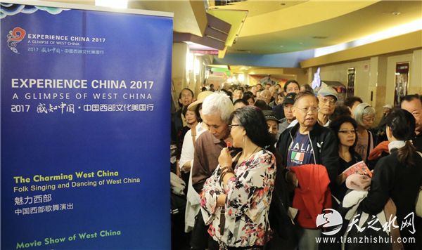 11月13日,由中国国务院新闻办公室和中国驻洛杉矶总领馆联合主办的“2017感知中国——中国西部文化美国西部行”系列活动开幕式暨首场“魅力西部”歌舞演出在洛杉矶市中心莱克曼剧院隆重举行。国务院新闻办公室代表团团长鲁广锦、驻洛杉矶总领馆代总领事孙鲁山、加州圣伯纳迪诺郡郡长海格曼、加州众议员周本立、洛杉矶郡及多个城市政要及南加州各界代表约1200人出席。