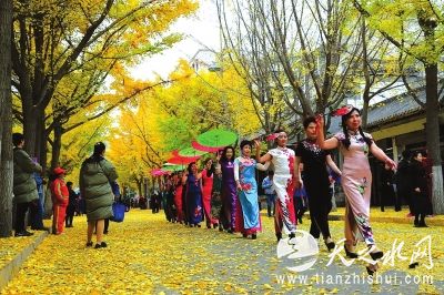 寒冬时节,染得金黄的银杏叶,已不知不觉铺满了天水市青年北路整条街道。为了暂时保留这份美,天水秦州区政府全段封闭4天,禁止一切车辆通行,并正式命名青年北路为“黄金大道”。连续几天,中国传统文化以别样方式在这里上演,市民自发组织参与其中,给“黄金大道”注入鲜活的血液。