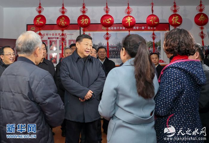 12月12日至13日,中共中央总书记、国家主席、中央军委主席习近平在江苏徐州市考察。这是12日下午,习近平在潘安湖街道马庄村党员活动室与正在学习党的十九大精神的党员交流。新华社记者 谢环驰 摄