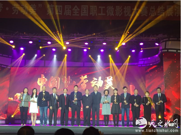 据悉,第四届“中国梦·劳动美”全国职工微影视大赛由中国职工文化体育协会、国务院国资委新闻中心、中国电影家协会联合主办,广东省总工会、新华社中国新华新闻电视网协办,广州市总工会承办。于今年6月正式启动,全国31个省市自治区、香港特别行政区共415家单位报名参赛,涵盖交通、石油、金融、电网等多个行业,参赛作品达2083部,创历届新高。参赛作品题材丰富多样,人物丰满多姿,人文精神饱满,多角度、多层次诠释了广大职工心中的中国梦。比赛通过网络报名、资格初选、入围评选和总决赛四个阶段,大赛组委会专家、评委根据各参赛单位推荐影片的数量和质量,最终评选出10个单位获得此次微影视大赛的优秀组织奖、11部作品获金奖、30部作品获银奖、100部作品获铜奖、10部作品获最佳人气奖。